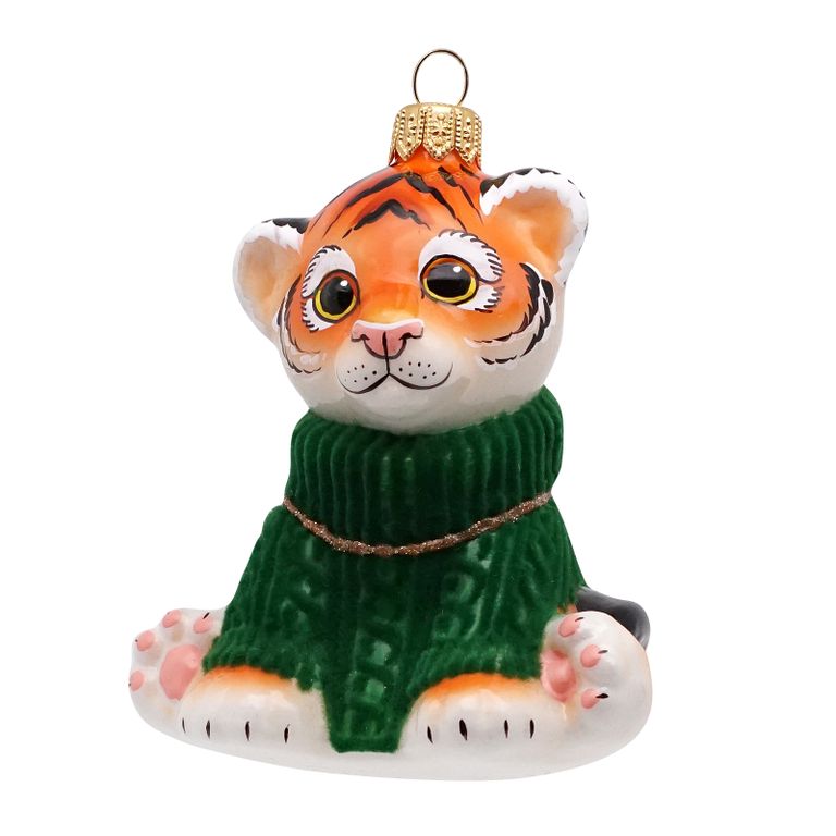 Елочная игрушка Тигренок в теплом свитере.